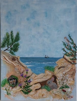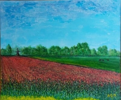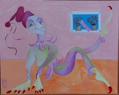 Van de 19 kunstenaars, waarvan sommige lid zijn van de Leidsche Mondialen, zijn in de andere ruimtes enkele werken tentoongesteld. Hierbij een afbeelding van een paar van die kunstwerken.
