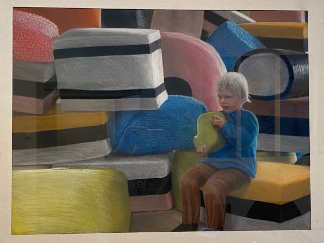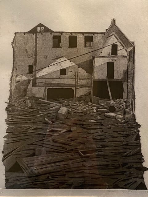 Zijn werk is te zien in de voorkamer, gang en bedsteekamer. In zijn etsen zie je zijn heel eigen onderwerpkeuze, de sloop en afbraak van gebouwen. Een voorbeeld hiervan is de afbraak van het ketelhuis van de Zeevaartschool. Hij werkt met mooie grijstinten en af en toe een kleuraccent. Juist zéér gekleurd zijn de pasteltekeningen, hier is zeer grote Engelse drop te zien met een kindfiguur erbij. Hij werkt mooi gedetailleerd en met een prachtige lichtval. De expositie is mogelijk gemaakt door André Sas ( lid van de Mondialen ) en Jeanine en Teun Gottenbos ( schoonzus en broer ).