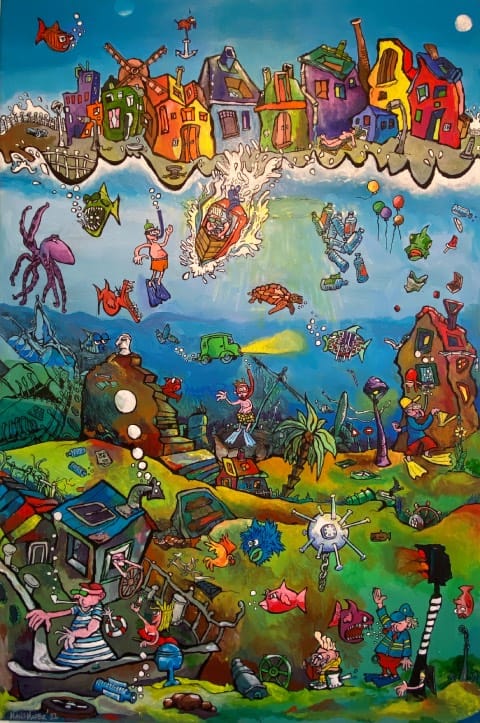 Zo lang als Hans Mader zich kan herinneren tekent hij al. In het begin tekende hij strips na tot hij ze zelf ging maken. Een grappige tekening met wel of geen tekst erbij ligt hem wel. Vijftien jaar geleden is hij begonnen cartoons op canvas te schilderen. Hij maakt geregeld cartoons in opdracht en is er zelfs mee op tv geweest, in het programma Top200AgoGo wat toen nog gepresenteerd werd door Mathijs van Nieuwkerk. Ondertussen heeft hij al een paar exposities gehad. De laatste was in mijn eigen atelier/Galerie in Leiden. Hij heeft kaarten en een cartoon bundel uitgegeven en samen met Mieke Honigh een kinderboekje gemaakt.