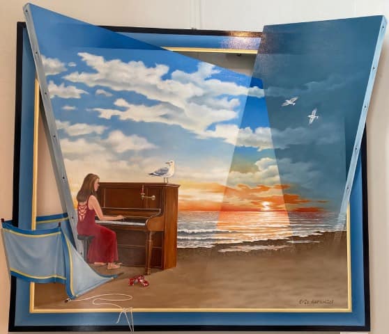 Ruimtelijk Realistisch Werk noemt Eric Kerkvliet zijn werk. Hij schildert met olieverf op dun ingezaagd paneel voorstellingen waarin fictie en werkelijkheid naadloos in elkaar overlopen. Aan de achterkant zijn de schilderijen voorzien van een houten raamwerk waardoor ze iets los van de wand komen te hangen. Bij een juiste belichting loopt de vorm van het schilderij als een slagschaduw door op de wand, waardoor een Tromp-l’oeil-achtig effect ontstaat. Over de voorstellingen op zijn schilderijen zegt hij: Ik ben gestopt waar het verhaal begint…