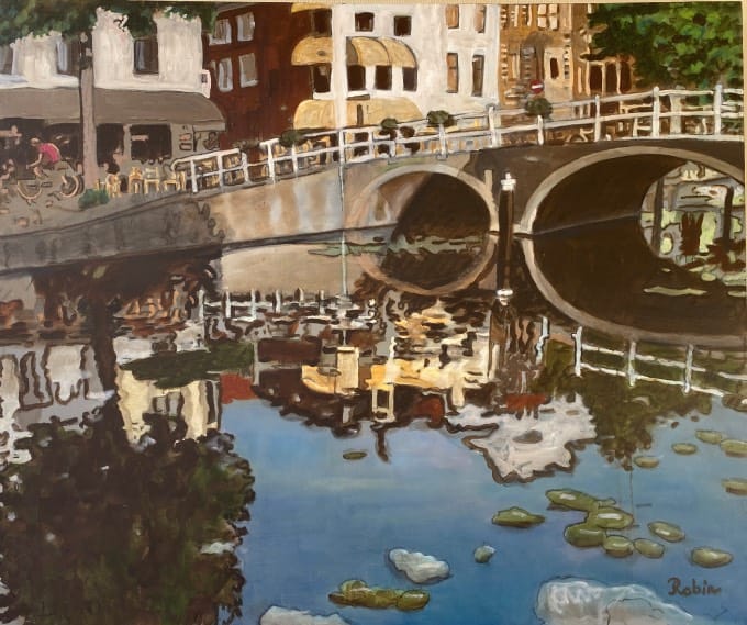 Robin Akkerman schildert al jaren graag stadsgezichten van Leiden. Maar ook op andere plekken staat hij het liefst buiten plein air te schilderen. Zijn Leidse stadsgezichten zijn meestal in een realistische stijl. Dit zijn vaak coproducties met Kees van Schie. Op locatie bij Noordwijk schilder festival bijvoorbeeld of in het buitenland (Curacao) hanteert hij de expressionistische stijl. Dit zijn meer kleurrijke taferelen.