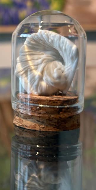 Odette Frijters: De schoonheid van de natuur. in de natuur is niets perfect – en alles is perfect. Wat bloeit, wat verdwijnt, wat opnieuw ontstaat: elk proces vraagt om ruimte. Oude patronen maken plaats voor nieuw leven, zoals de seizoenen dat steeds opnieuw tonen. Mijn werk is volledig handgemaakt en bevat altijd texturen en patronen. Niet alleen het object als geheel, maar ook de kleine details moeten kloppen. Die details kunnen zichtbaar worden in structuur, kleur of een subtiele vervorming van de vorm. Iedere creatie is een experiment: een poging om een nieuw kunstwerk te laten ontstaan. Porselein is voor mij een bijzonder materiaal. De pure schoonheid ervan blijft mij fascineren. De vormen die ik maak zijn porseleinen bewegingen, geïnspireerd op de ritmes en dynamiek van de natuur. Speciaal voor deze expositie heb ik kleine porseleinen kunstwerken gemaakt.