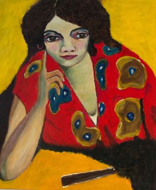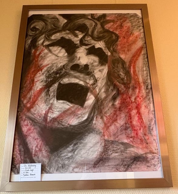 Gert Versluis, het getoonde werk op de expositie bestaat uit drie deelverzamelingen. De eerste gaat over vorm en kleur en de invloed van Kandinsky. De tweede gaat over verval van materialen. De derde bestaat uit portretjes. (tik op de foto om de hele afbeelding te zien)