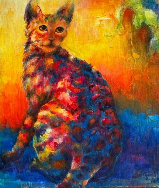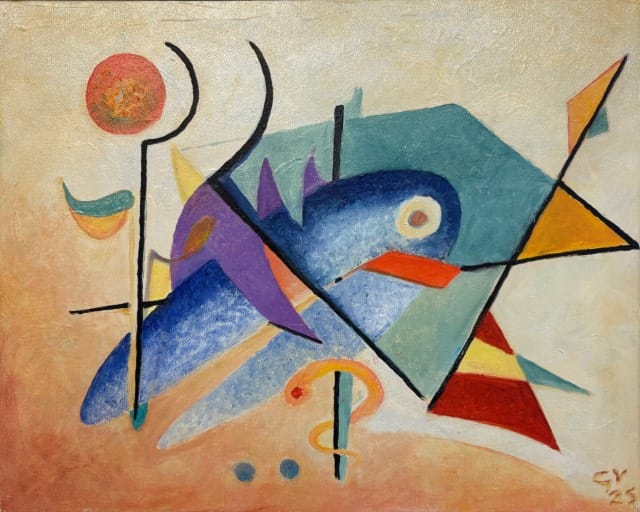 Vorm en kleur: Mijn kennismaking met het werk van Kandinsky dateert van twee jaar geleden. Zijn ontwikkeling naar de abstracte schilderkunst is een blijvende bron van inspiratie voor mij. Het draait bij hem steeds om vorm en kleur, die samen het experiment aan gaan. Een genot om mee te maken.