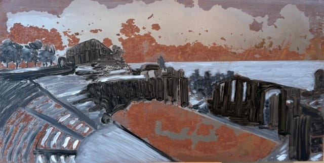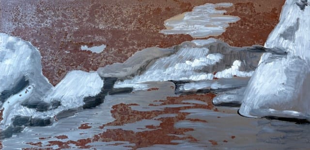 Verval: Kleurovergangen ontstaan vaak door verval van materiaal. Een poging om daar iets van te vangen vind je in de donkere schilderijen van roestend ijzer. Portretjes: De drie smoelen representeren elk een eigen gemoedstoestand, variërend van open tot uitdagend en in zichzelf gekeerd.