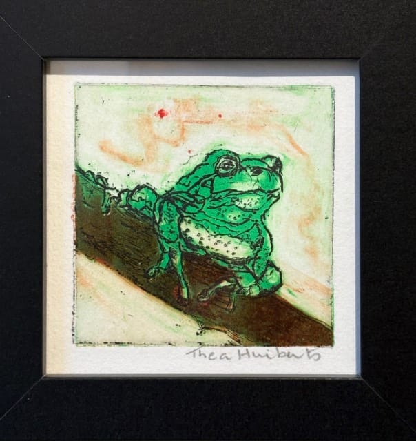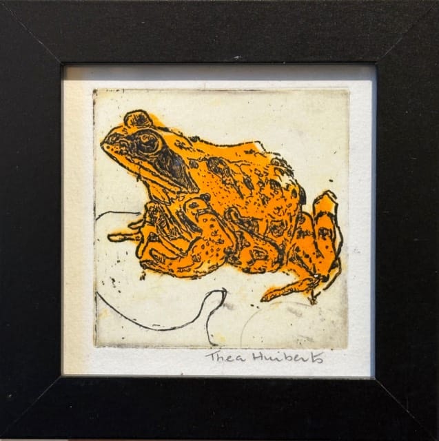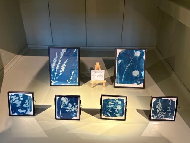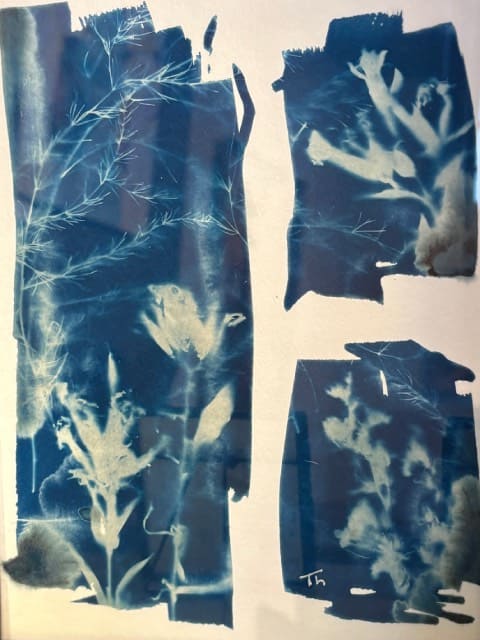 De etsen zijn gemaakt op een zinkplaat en daarna afgedrukt. Ik werk graag met kleur. De Cyanotype is een fotografietechniek uit de 18e eeuw. Ze worden ontwikkeld met zonlicht