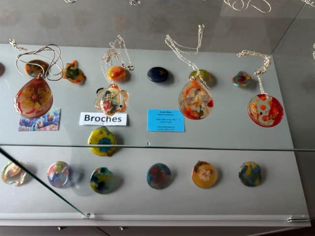 Annelies Witjens: Met epoxy als medium creëert ze kleurrijke sieraden die functioneren als draagbare sculpturen. Transparant, tactiel en gelaagd: elk werk vangt het spel van licht en beweging. Haar collectie beweegt tussen designobject en amulet en nodigt uit tot verwondering èn aanraking.