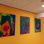 Nardine maakt abstract, kleurrijk werk en laat zich leiden door haar gevoel.