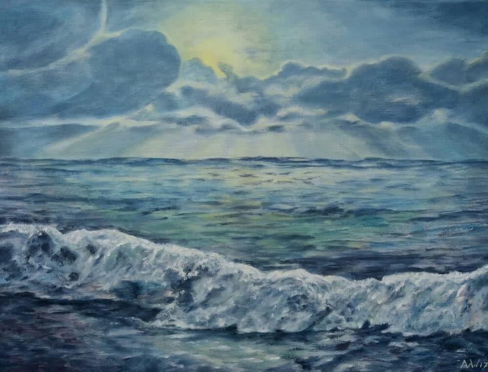 In Leiderdorp heb ik les gehad bij de Volksuniversiteit en begon daar met olieverf. Dat je met olieverf je kleuren langer kunt mengen voordat je verf opdroogt beviel me wel.