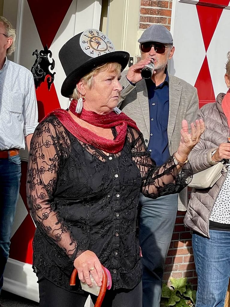 De opening werd om 16 uur afgetrapt door de drie kunstenaars zelf, die de vele aanwezigen vertelden over hun werk en hun inspiratie. Daarna kwamen twee dames, die eruit zagen als “bewaarders van de tijd”, die de aanwezigen vergastten op een kleine voorstelling over de alomtegenwoordige ‘haast’.