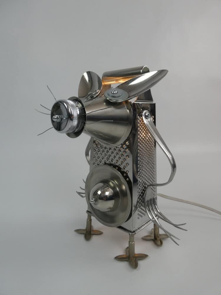 De inspiratie voor een kunstwerk komt vaak voort uit de voorwerpen die ik heb gekocht. Maar de laatste 3 jaar heb ik een aantal kunstwerken in opdracht gemaakt en dan geeft de opdrachtgever de richting aan. Dat zijn tot nu toe meestal lampen. Kunstwerk en gebruiksvoorwerp in een.