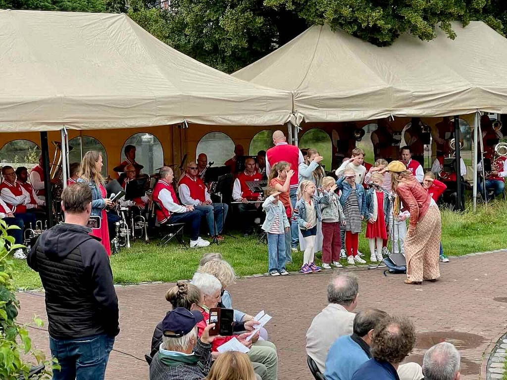 Nadat het kinderkoor, met begeleiding van K&G 3, het Rembrandtlied ten gehore had gebarcht, kon het in grote getale opgekomen publiek het standbeeld van dichtbij bewonderen. Hieronder een fotoverslag van de bijeenkomst en een filmpje van de onthulling.