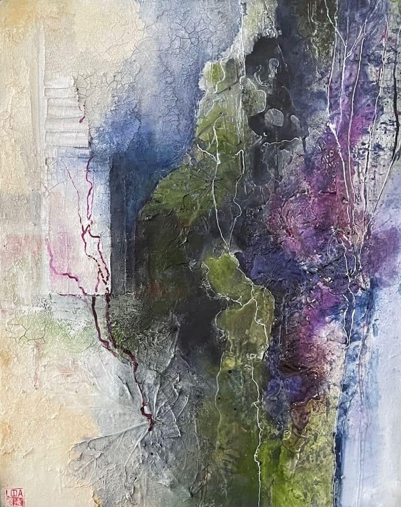 Maar ik combineer het ook met papiersoorten, textiel en hergebruik delen van mijn oude schilderijen. Ik hou ook van structuren in muren, poorten en deuren.