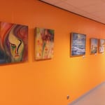 Sinds deze week mogen de Mondialen exposeren in Gezondheidscentrum Rijnland in Leiderdorp. We mogen daar een half jaar hangen, daarna hangt er gedurende drie tot vier maanden werk van anderen en dan mogen wij weer.