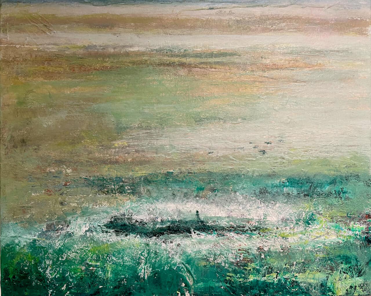 In de achterkamer zien we het werk van Gert Verhulst. Zijn ietwat geabstraheerde landschappen tonen ons een wereld, waar we allemaal graag in willen vertoeven.