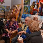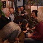 Alle vaste gasten waren er, leden van het eerste uur, zoals Zina Anisimova en Reinier Schoonderwoerd den Bezemer. Maar ook nieuwe leden en vrienden van de Leidsche Mondialen waren aanwezig. Het is duidelijk kunst verbindt en zorgt voor afwisselende gesprekken, vandaar dat het ook weer lang gezellig druk bleef.