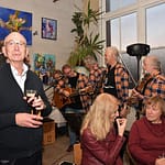Vrijdagmiddag 20 januari 2017 hield Kunstenaars Collectief De Leidsche Mondialen haar nieuwjaarsborrel voor leden en vrienden van het collectief in het atlelier van Dick Bakhuizen van den Brink en Margaretha Frederiks. Het begint ondertussen bijna traditie te worden dat de band Doggy Dike voor de muzikale ondersteuning zorgt tijdens de borrel.