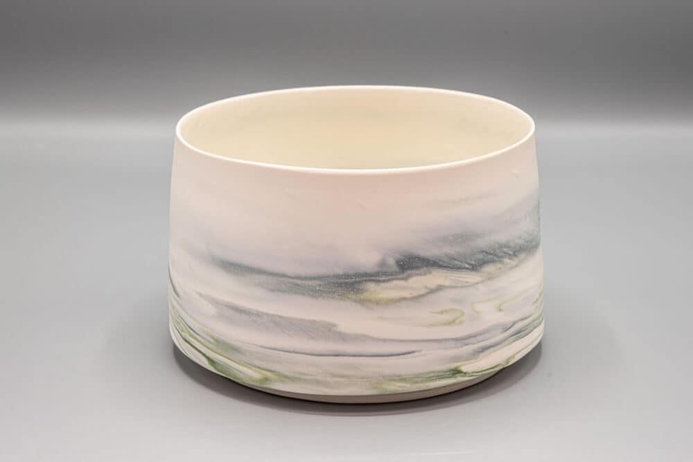 De laatste jaren werk ik naast steengoedklei veel met porselein, waarbij ik op zoek ben naar de transparantie, ritme en beweging van het materiaal. Vaak is de buitenkant van mijn werk ongeglazuurd, zodat je de pure textuur van het porselein kunt voelen.