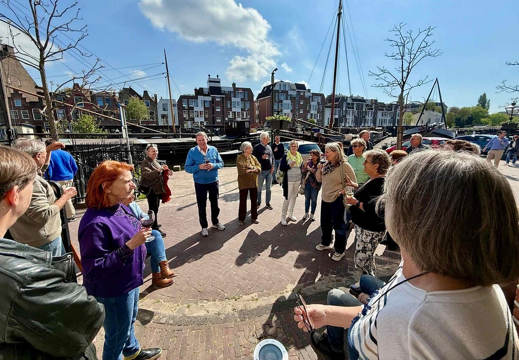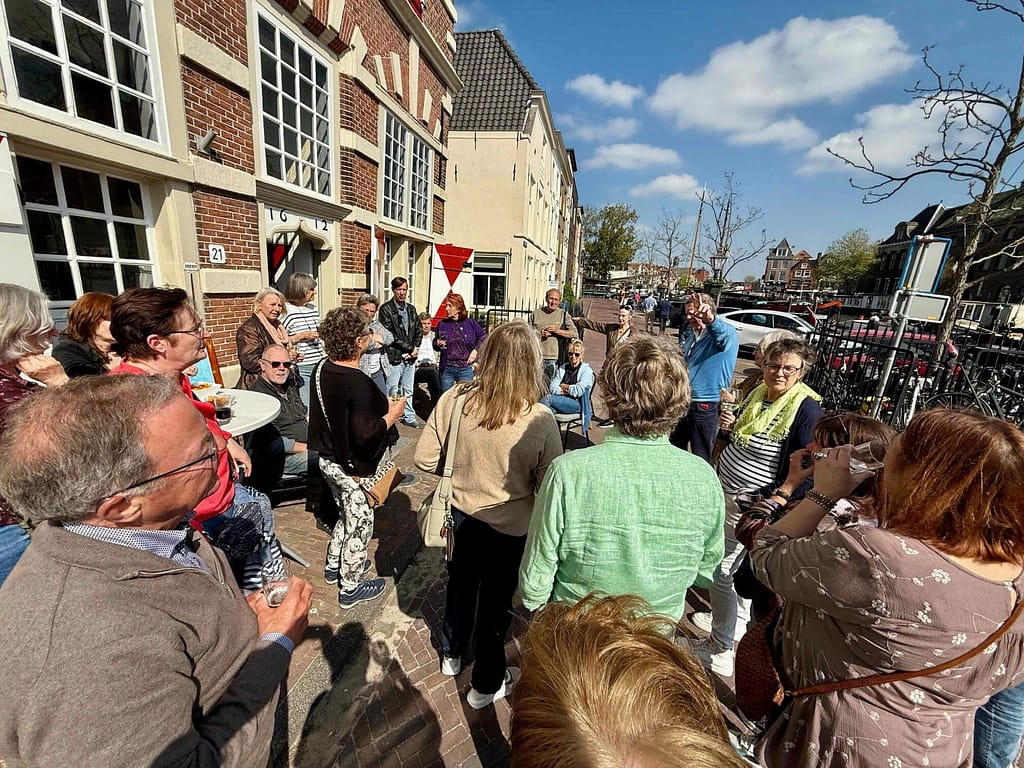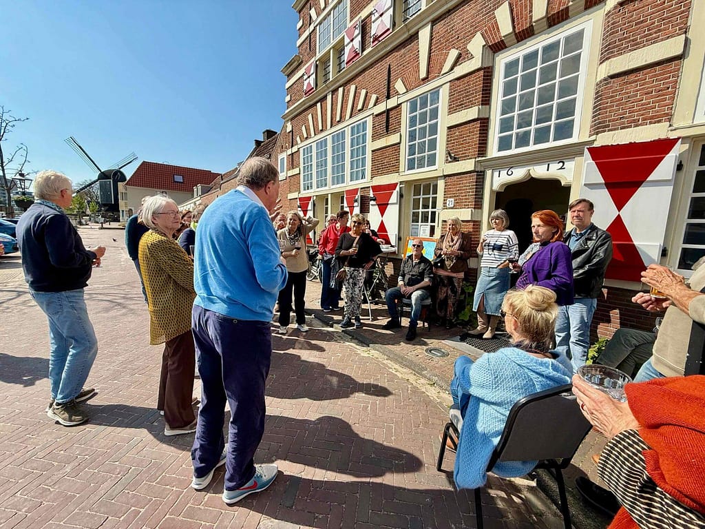 Het is een zonnige vrijdag, de 25e april. De dag dat er weer een nieuwe zonnige expositie van de Leidsche Mondialen wordt geopend. De dag ook dat de opening gezellig buiten kan plaatsvinden. Zodat alle aanwezigen, leden en vrienden van de Mondialen, heerlijk met een drankje in de hand kunnen genieten van de opening. Die traditiegetrouw wordt gestart door voorzitter Ton Kohlbeck. Waarna Dea Brak het overneemt met een korte introductie van de nieuwe tentoonstelling.