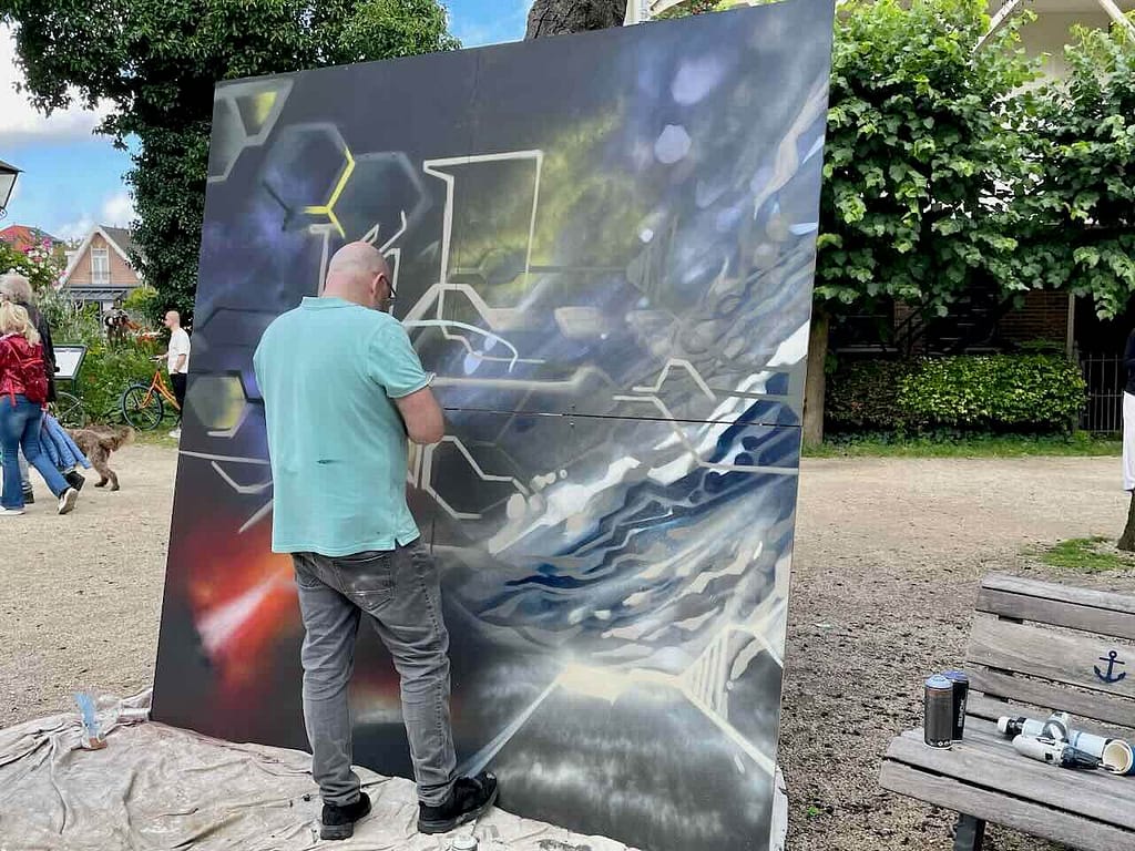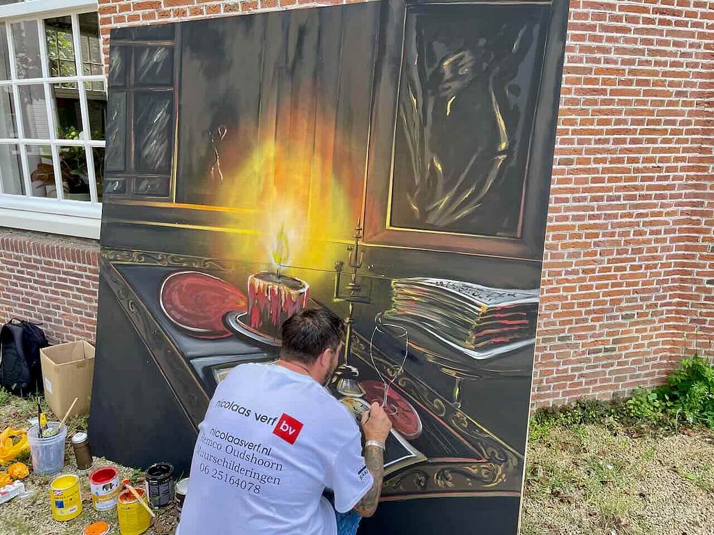 Een klein stukje verderop, in de Weddesteeg, maakten een aantal kunstenaar grote werken. Ze deden dat in de openlucht zodat de vele voorbijgangers vaak met open mond toekeken hoe de kunstenaars te werk gingen.