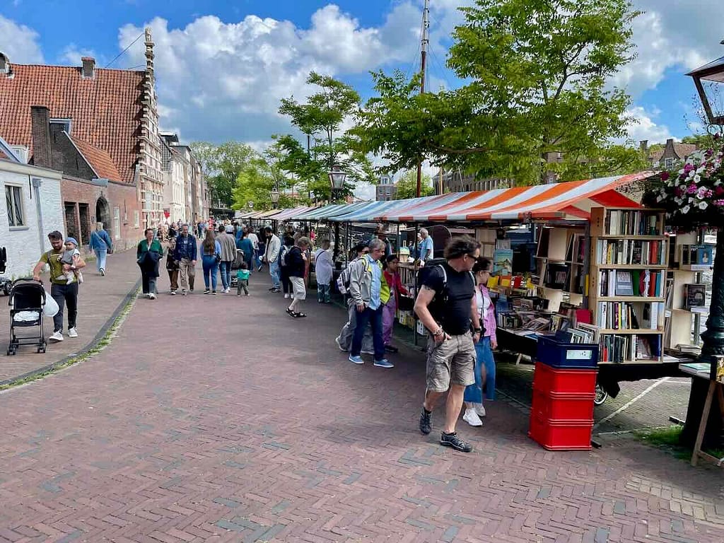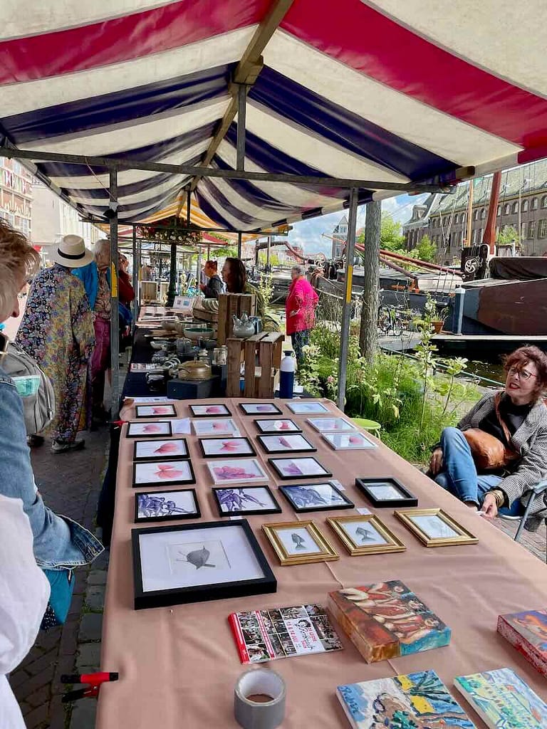 Zondag scheen de zon en dat leverde veel bezoekers op, die langs de vele kramen met kunstwaren kuierden. En ze kuierden niet alleen, nee, ze kochten ook nog veelal kleine kunstwerken van de talloze kunstenaars. Ook de Stadstimmerwerf kreeg veel bezoekers binnen de deuren. Rond de 1300 mensen namen een kijkje in het 17e-eeuwse pand.