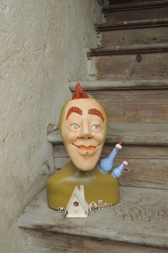 Af en toe maak ik nog een uitstapje naar keramiek, maar meestal zijn de materialen waar ik mee werk aluminium folie, daklood, piepschuim, ijzerdraad, behangers tape, papier-maché, kurk, gevonden spullen bij de kringloop en verschillende soorten aan de lucht drogende klei.