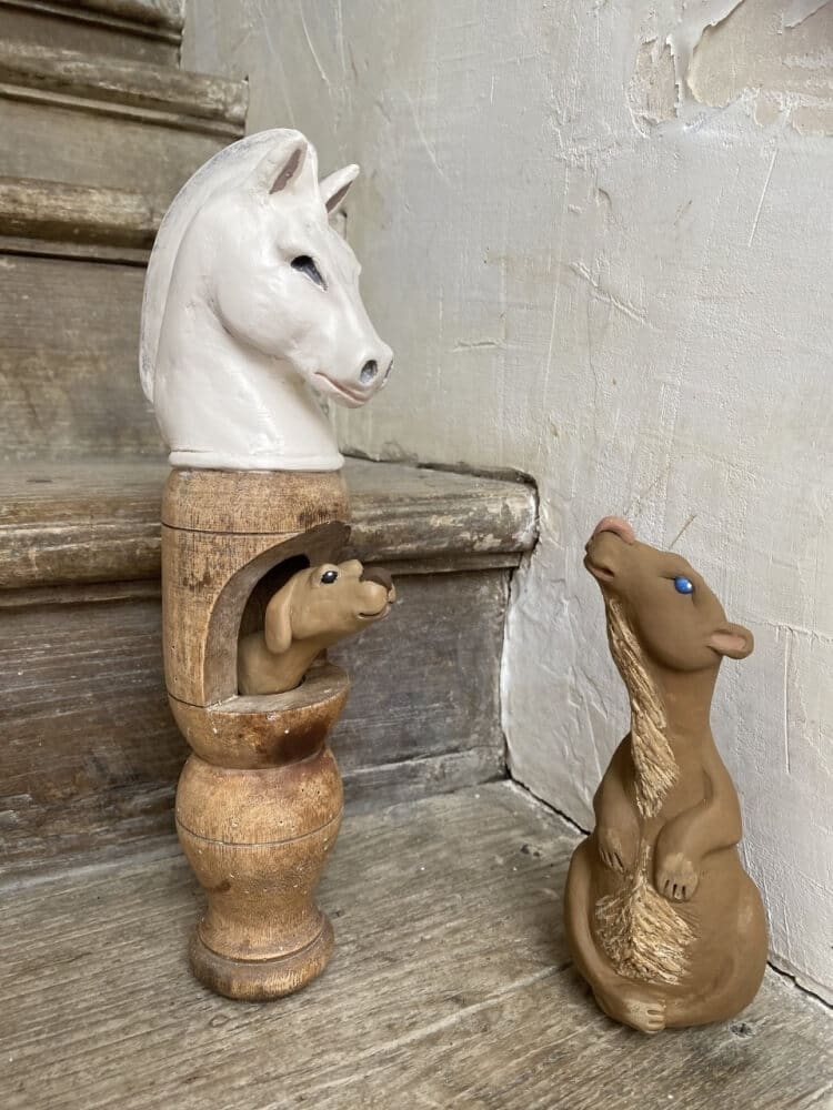 Via een creatief pad van reclametekenen, modeontwerpen, zilversmeden en keramiek, ben ik uiteindelijk 12 jaar geleden uitgekomen bij het maken van figuren en dieren met mixed media. Veel van deze materialen zie je niet in het eindresultaat, maar is wel degelijk de basis.