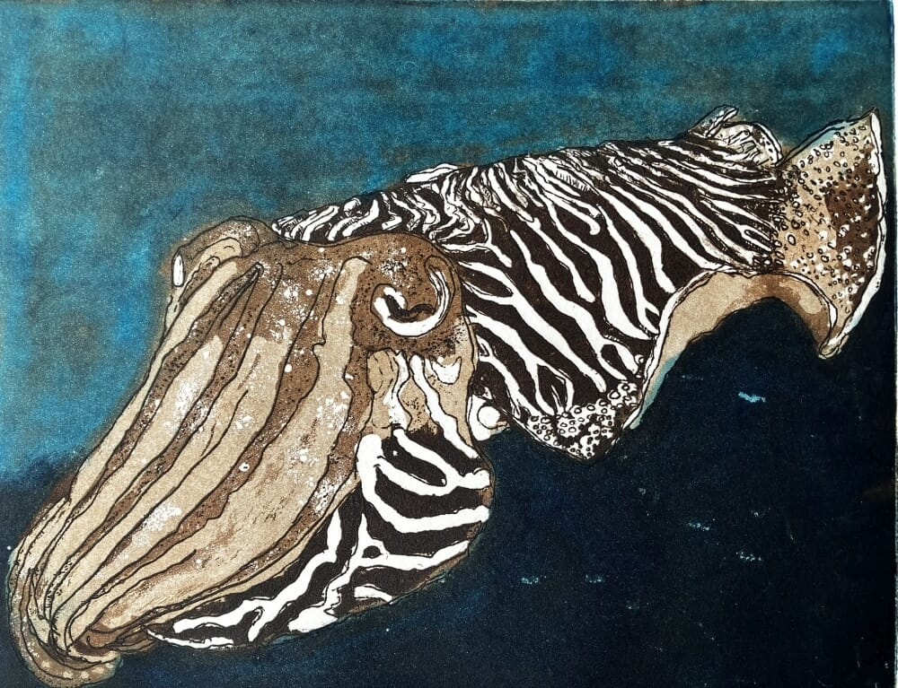 Ik hou er van om mijn etsen ook in kleur af te drukken en te experimenteren met toepassingen.